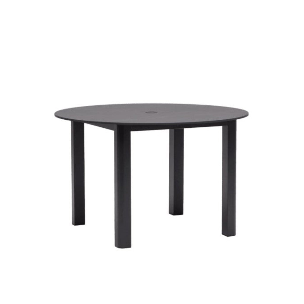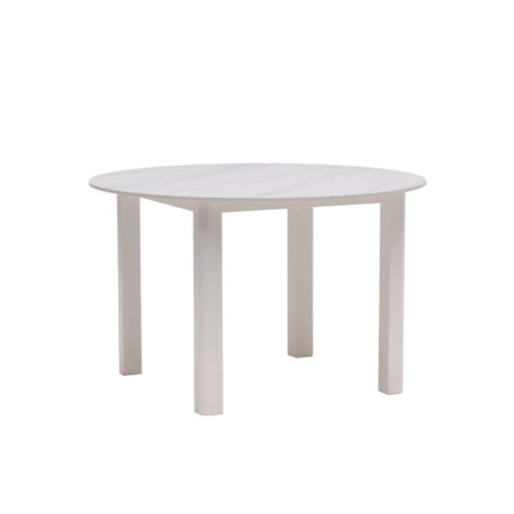 The Hampshire collection from Ratana features a powder-coated aluminum frame and sintered stone top in the colours Diva Night and Pietra Grey or White and Glacier White. Swatches of the finish are available to view in store or call 778-265-9740.