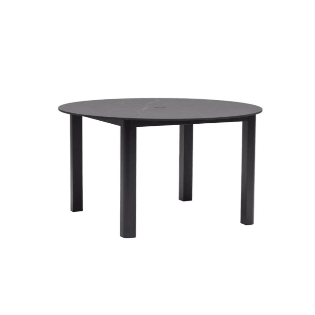 DESIGN - The Hampshire collection from Ratana features a powder-coated aluminum frame and sintered stone top in the colours Diva Night and Pietra Grey or White and Glacier White. Swatches of the finish are available to view in store or call 778-265-9740.