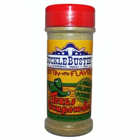Texas GunPowder Original Seasoning is pure ground jalapeno peppers. We are very proud to offer the Original (green jalapenos) Texas GunPowder. This product has been popular since the 80's when it was first introduced in Mesquite Texas. There have been many folks copy this recipe but there is only one Original and this is it! Original recipe, pure ground green jalapeno powder. Texas gunpowder has a spicy-sweet flavor. Add to any food or use in place of black pepper, but watch out - IT'S HOT! Equal to 5,000 scoville units and like all SuckleBusters products - No Bad Stuff!