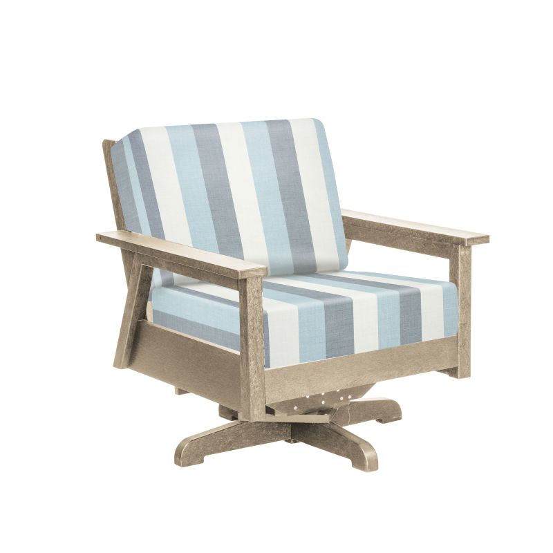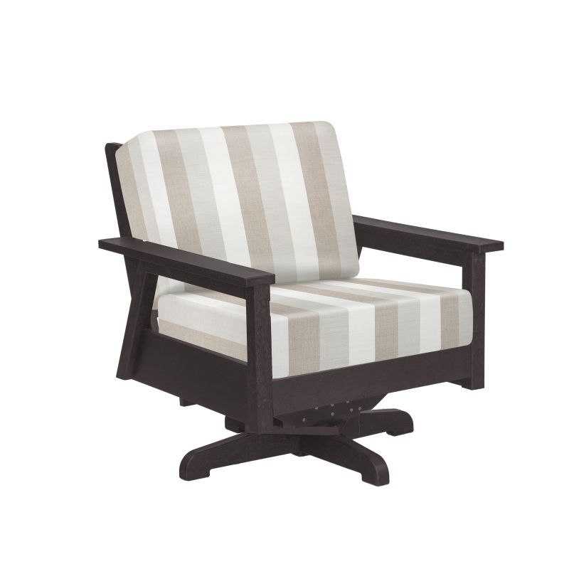 Sleek, modern and clean, this outdoor swivel arm chair frame is perfect for any outdoor space! Made of recycled plastics this chair is durable, comfortable and meant to withstand the outdoors.